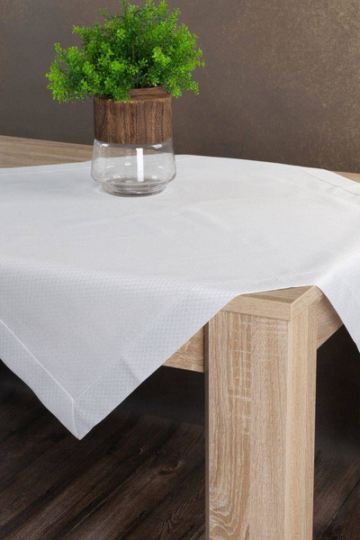 Bijeli stolnjak tkan finim geometrijskim uzorkom sa srebrnom niti i trakom na rubovima 85x85 Julia