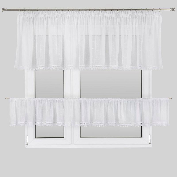 - Zavjesa gotova s ukrasnom čipkom širina: 400 cm, duljina: 65 400 cm, boja: bijela, Sastav: 100% poliester