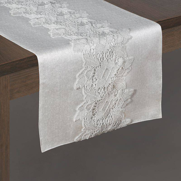 - Wyjątkowo elegantnibieżnik, zdobiony pasem gustownej gipiury. Wykonany z wysokiej jakości materiałów, starannie wykończony. szerokość: 35 cm, długość: 180 cm, kolor: naturalny, Skład: 100% poliester