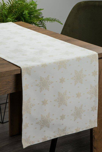 Trkač za stol božićni stolnjak žakard tkanina sa motivom zlatnih pahuljica protkanih zlatnim koncem 40x180 Flash 9