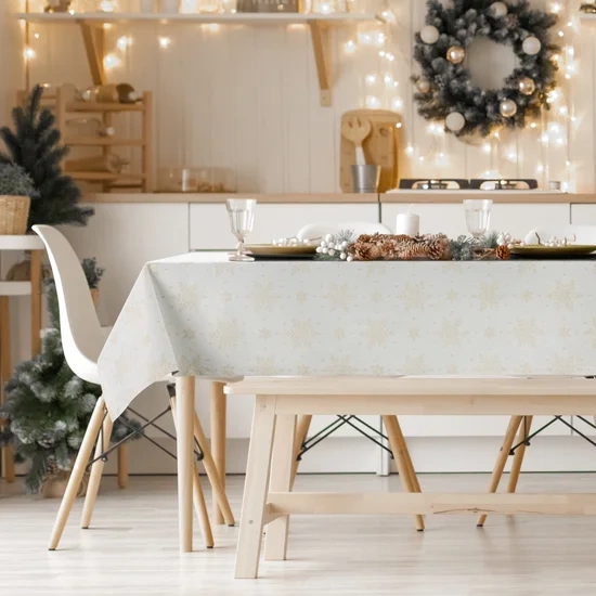 Božićni stolnjak od jacquard tkanine s motivom snježne pahulje protkane zlatnim koncem 135X180 Flash 9