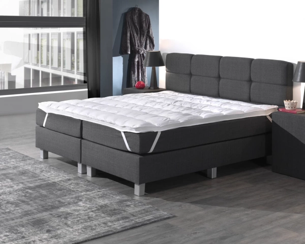 Donji dio presvlake ispunjen je puhanim poliesterskim vlaknima gramature 300 grama/m2, pravokutno prošivenim kako bi se osigurala ravnomjerna raspodjela. Elastične trake u kutovima osiguravaju sigurno pričvršćivanje na madrac, držeći nadmadrac na mjestu za nesmetan san.