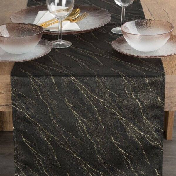 Crni nadstolnjak ukrašen sjajnim zlatnim uzorkom mramora, otporan na mrlje 40x140 Suzana