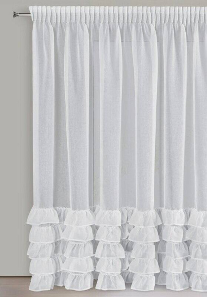 - Gotova zavjesa ukrašena volanima na dnu, širina: 300 cm, dužina: 250 cm, boja: bijela, težina: 70 GSM, sastav: 100% poliester
