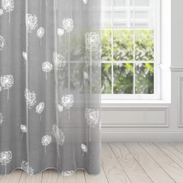 Siva zavjesa s motivom maslačka, izrađena tehnikom reljefnog tiska, 140x250 cm - SABINE