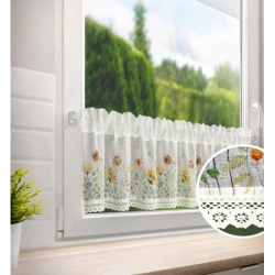 Zavjesa za kuhinju 150x30 od gaze ukrašena printom cvijeća i čipkom Nati