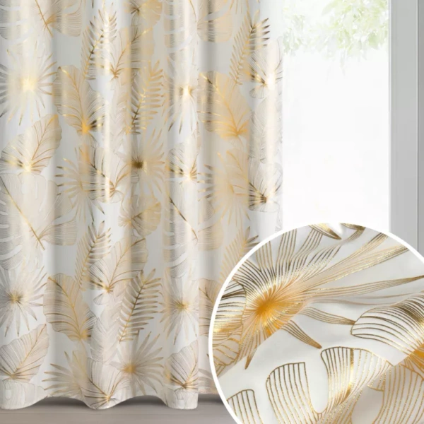 Krem i zlatna tkana zavjesa ukrašena sjajnim egzotičnim motivom lišća, 140x250 cm, zlatne ušice - ZARIA