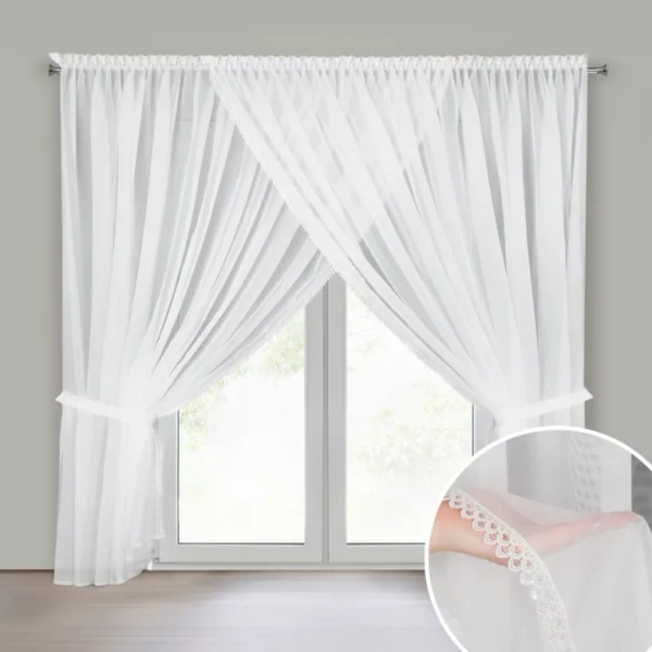 Bijela zavjesa 400x250 cm s ukrasnom čipkom i vezicom - CAROLINE
