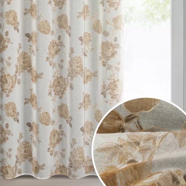 Zavjesa 140x250 ukrašena printom ruža s dodatkom zlata, izrađena od gaze, MELA