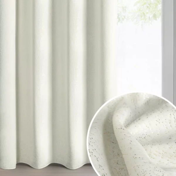 Ova gotova zavjesa, izrađena od baršunastog, sjajnog baršuna, elegantna je opcija za interijere koji zahtijevaju luksuznu završnu obradu. Nježan, sjajni uzorak dodaje dekorativni dodir tkanini, ističući njezin upečatljiv sjaj. Rupice za zavjese omogućuju jednostavno vješanje i ravnomjerno drapiranje, stvarajući skladne, meke valove. Savršena za dnevne sobe, spavaće sobe ili sobe u kojima su elegancija i dekorativni detalji prozora ključni.