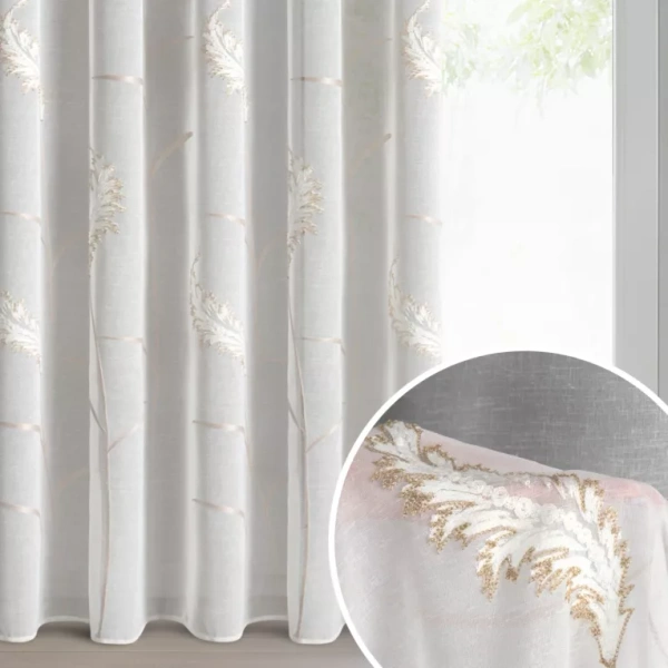 Krem zavjesa od mat gaze ukrašena vezom s dodatkom zlatnog konca, traka 140x270 cm - AURELIA
