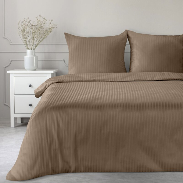- Komplet jednobojne prugaste posteljine od saten damasta širine 140 cm dužine 200 cm . Težina: 125 GSM. Sastav: saten, 100% pamuk.