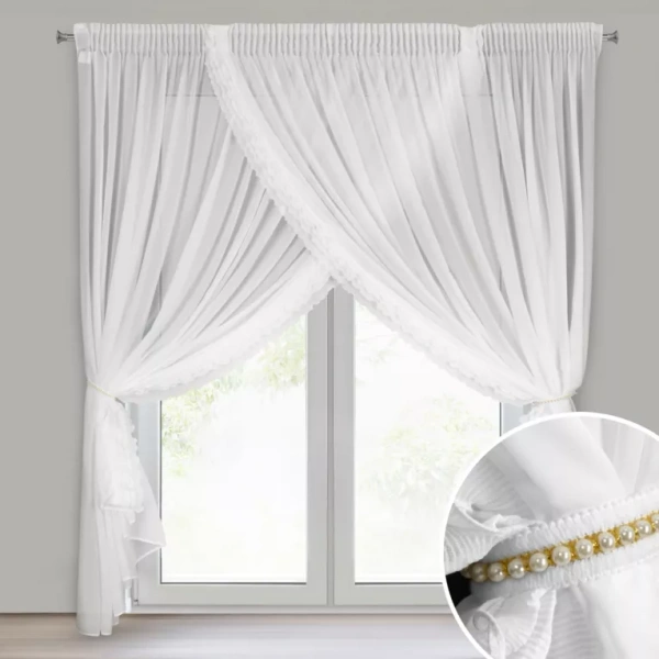 Bijela zavjesa od šifona ukrašena volanom, s vezicom, 400x250 cm LUISA