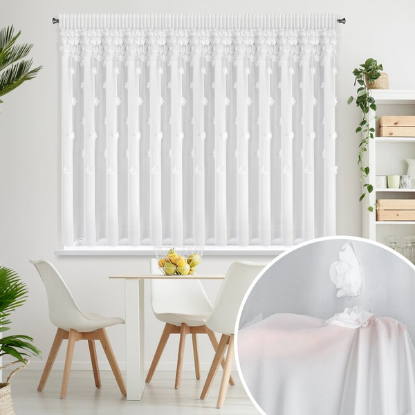- Gotova šifonska zavjesa s aplikacijom u obliku ruže, širina: 350 cm, duljina: 160 cm, boja: bijela, težina: 60 GSM, sastav: 100% poliester