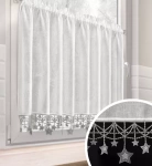 Bijelo-srebrna kuhinjska zavjesa od gaze ukrašena božićnim zvijezdama, tunel 150x90 cm - XMAS