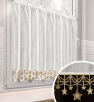 Bijelo zlatna kuhinjska zavjesa od gaze ukrašena božićnim zvijezdama, tunel 150x90 cm - XMAS