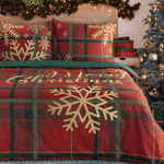 Božićni set posteljine 160x200 cm pamučni saten, bijela, bež, ukrašen suptilnim printom sobova BOSQUE