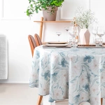 Okrugli stolnjak fi 150 cm s otisnutim pastelnim motivom cvijeća Ines 10 s dodatkom lana