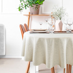 Okrugli stolnjak s lanenim tkanjem i sjajnim koncem, završen dvostrukom trakom na rubovima ∅ 180 cm Bianca 2