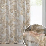 Bež zavjesa s printom lišća od gaze i zlatnim detaljima, 140x250 cm, s ušicama - LAYLA
