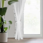 Zavjesa 140x270 od etamina, ukrašena volanima sa strane tkanine, istaknuta sjajnim kristalima, uključujući i ukrasnu traku za vezanje Kathy