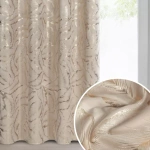 Bež i šampanjska zavjesa ukrašena printom lišća, 140x250 cm, zlatna ušica - MILENA